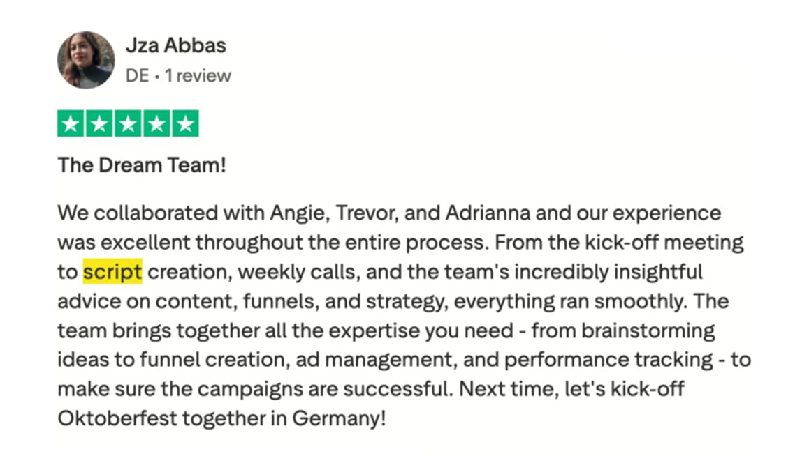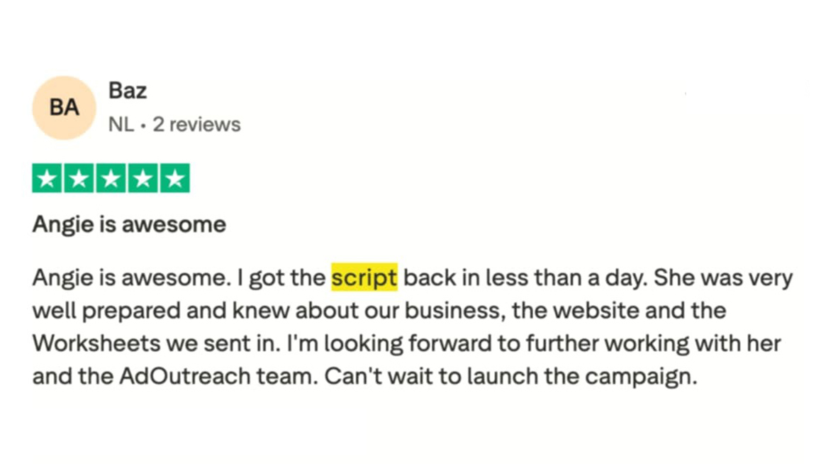 We're so confident in the power of our high-converting video ad scripts, we're taking all the risk. We will craft a custom script designed to outperform your current best-performing ad. If it doesn't, we'll give you your money back.