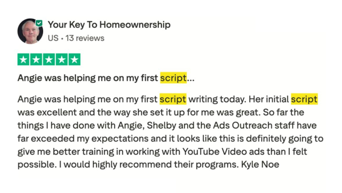 You won't just get a script—you'll unlock your ability to become an expert at video ads for life.