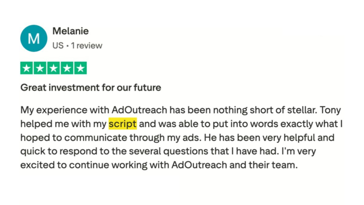 It’s time to stop leaving money on the table. For just $97, you can secure your custom video ad script and an implementation call today to get your next high-converting video ad out into the world.
